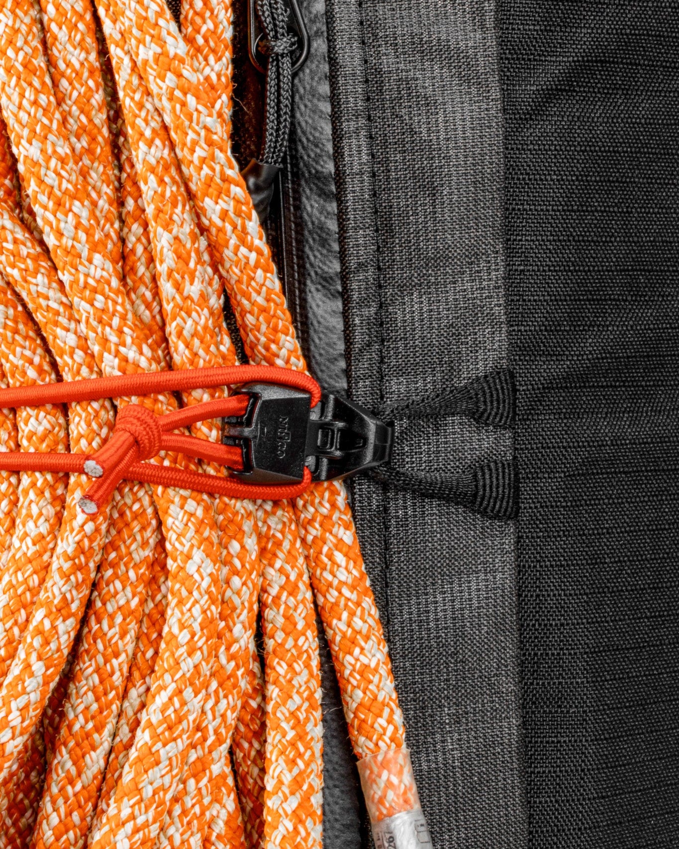 This bottom-access compartment can be reached even while wearing the backpack. In summer, it can be used as a rope storage with locking zipper sliders ensuring it won't open while dragging the rope out.
